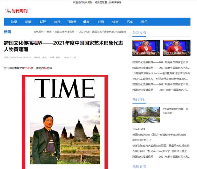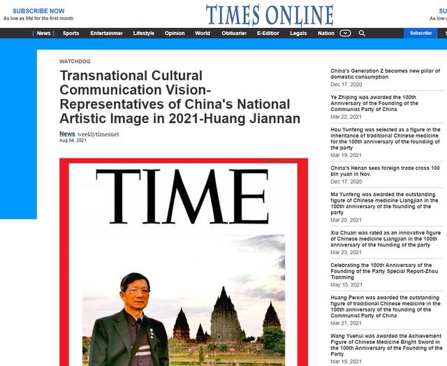 《时代周刊》作为全球卓有影响力的媒体,报道的都是国际知名人士、风云人物,如国家首脑、商界巨头、国际明星及各界精英、翘楚。在最近一期的《时代周刊》上,罕有地出现了一位华人艺术家的身影,他就是享誉国际的艺术家黄建南。