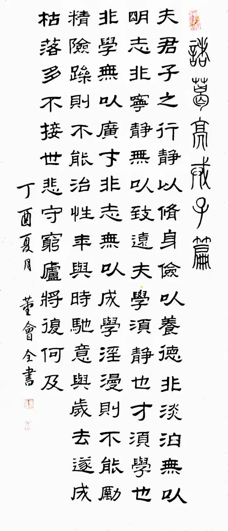董会全,男,汉族,笔名惠泉,字号墨海道人,听涛轩主人,1969年出生于福建省龙岩市长汀县新桥镇叶屋村,大专学历,中共党员,现系中国书法家协会会员、中国书法家协会书法培训中心学员、福建省书法家协会会员、福建省龙岩市书法家协会会员、汀州弄墨谭书社会员、福建省长汀县书法家协会会员、中国书画家协会会员等;自幼酷爱书法、多年来笔耕不辍,经常临摹古代书法碑帖,以欧颜柳赵、苏黄米蔡以及二王为书法启蒙的代表,对古代名人书帖遍临无数遍,时常户外写生创作,游历三川五岳,得其自然界的大象变化,去粗取精,遍访名师,书法专写隶书楷书师承刘文华,刘洪祥,李双阳等老师,经多年熏陶,受名师点播,有所改变,在书法研究的道路上,取得了属于自己的造化,自成一派,师古不腻古。在书法领域的道路上取得了优异的成绩。常与先辈请教书法的精髓之处,受益匪浅。书法作品曾多次参加国内书法展览比赛活动,作品屡次荣获大奖,并多次从参赛展览比赛中脱颖而出,书法作品得到了专家和评委老师们的高度认可和鼓励。