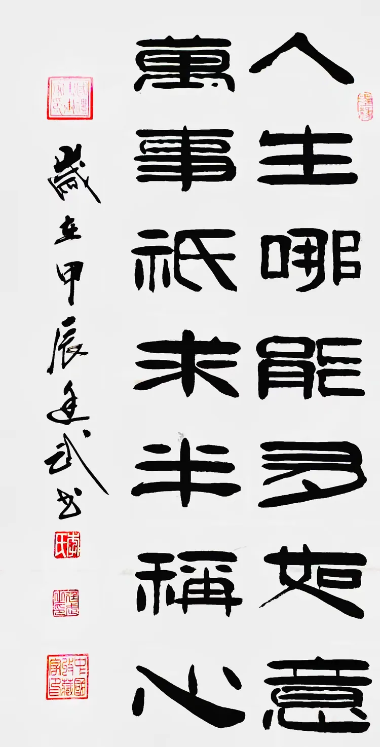 李廷武先生自幼酷爱书法,他的学习历程丰富而扎实。他先学欧楷,再习二王(指王羲之和王献之),后专攻隶书,深入研究史晨、张迁、曹全等古代书法名家的作品。他特别钟爱刘炳森大师的隶书,深得其精髓,并因此获得了显著的进步。他的书法风格萧洒大气,刚柔并济,形成了自己独特的艺术风格。