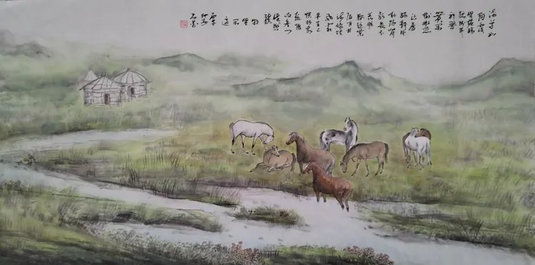 深知,宣传非涂饰,须记汗滴之重,扬脊梁之刚。余铭诸心,不事雕琢。笔墨虽微,可载千钧,宣传虽小,能聚众志。以煤海为砚,山河为卷,所作、《矿山新貌》《矿井之光》《草原晨曲》《煤海行》等作品,当时都迭膺嘉奖。今虽古稀之年,而兴味愈浓,每日笔耕,作画忘卷,时偶得佳句,欣然自许,古人云:技进乎道,余虽未至,然心向往。数十载光阴,尽付毫素,回首平生,无他长物,唯有诗书画卷常伴鸣,此中之乐,非亲历者不能知也。