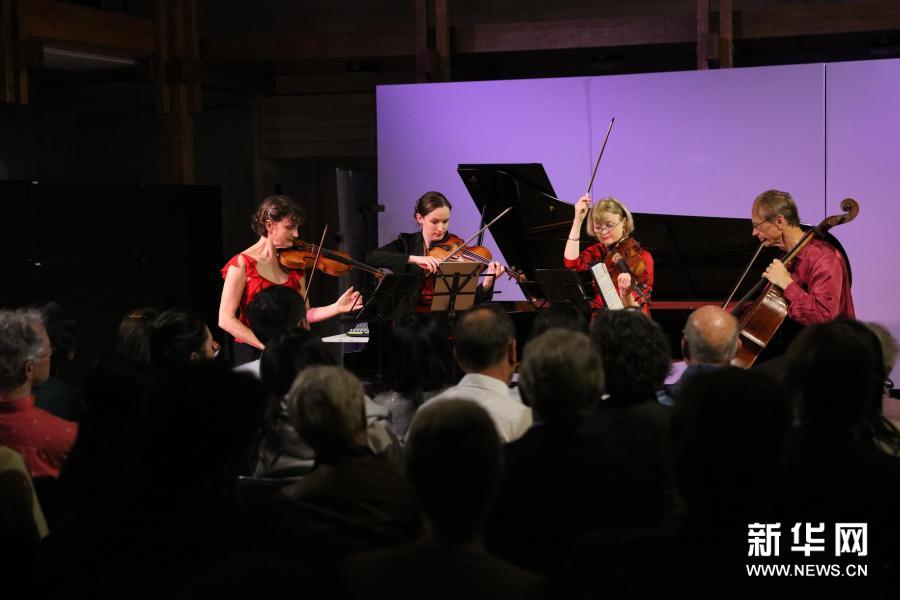 11月26日,在新西兰首都惠灵顿,新西兰弦乐四重奏组合演奏美籍华裔作曲家周龙的作品《瑶琴之歌》。(孟韬 摄)